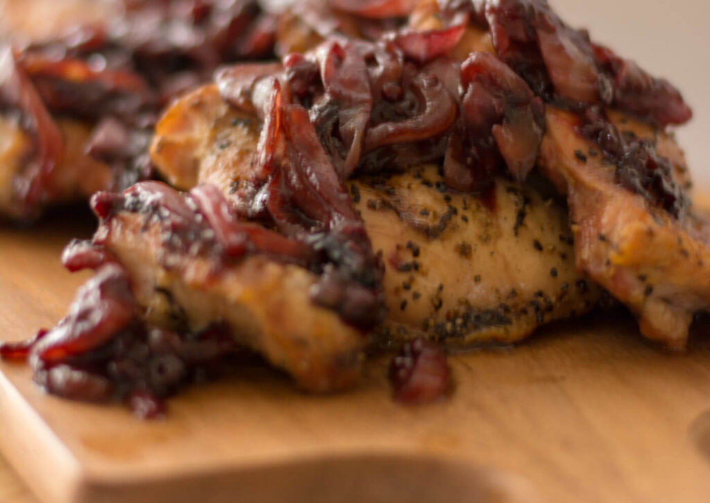 3. Prepare o molho. Enquanto o frango descansa, aqueça a cebola caramelizada com um toque de vinho branco para um molho mais sofisticado.