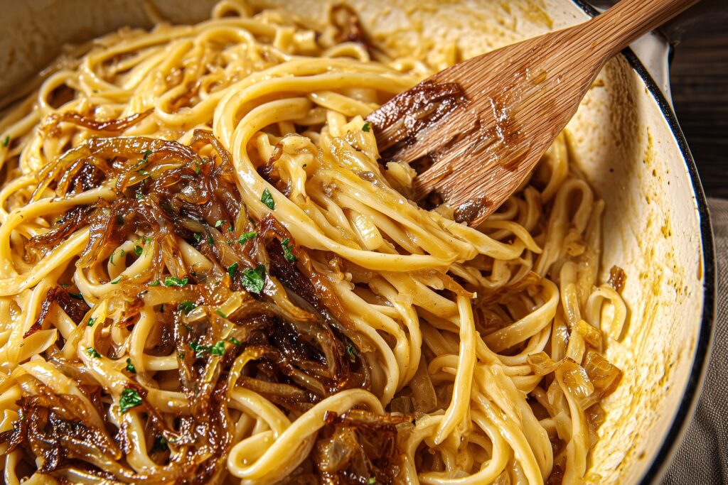 2 – Macarrão cremoso com cebola caramelizada e queijo